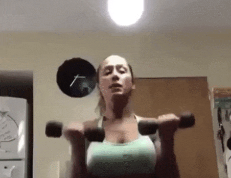 When we mentioned dance classes in the gym, one benefit we failed to state is how dance improves spatial awareness. That could have come in handy for this woman, who was pretty oblivious that the light fixture was right above her head when doing that lateral raise.